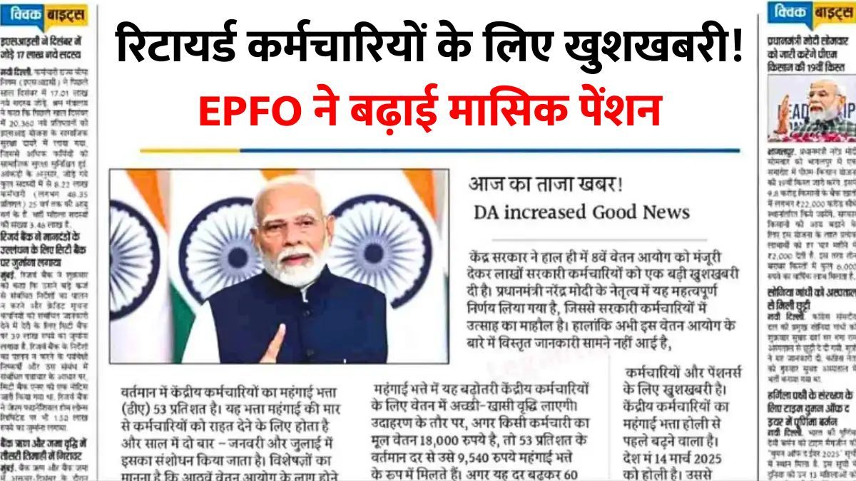 EPFO Pension Update:साल 2026 में निजी क्षेत्र में काम करने वाले कर्मचारियों के लिए पेंशन से जुड़ी एक अच्छी खबर सामने आई है। Employees’ Provident Fund Organisation (EPFO) ने पेंशन व्यवस्था में कुछ महत्वपूर्ण बदलाव किए हैं, जिनसे भविष्य में मिलने वाली मासिक पेंशन में बढ़ोतरी की संभावना जताई जा रही है।